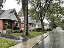 A line of small single-family houses in the Crawford Park Extension, in Verdun, Montreal. This subdivision was one of Gitterman's first urban plans, undertaken while at the NHA in the early 1940s.