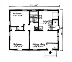A design for a small semi-prefabricated house for the Department of National Defense. Although the authoring architect of this particular design is unknown, Gitterman created many similar small house designs on behalf of the DND.