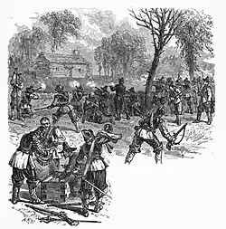 Attack on Shawomet by soldiers from Massachusetts in 1643 from a 19th-century history of the United States