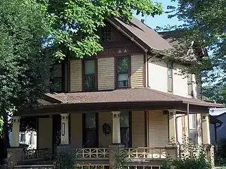 The Samuel Hoffman Jr. House is a historic building located in the West End of Davenport, Iowa, United States. Samuel Hoffman Jr. was a bookkeeper at the German Savings Bank downtown. The house exhibits details of the Stick-Eastlake style such as the diagonal and short vertical stickwork on the gables. It also features molded bargeboards and decorative strips applied to the window on the east side. The porch, which is not original to the structure, features simple and geometric details that do not distract from the rest of the house.[2] The residence has been listed on the National Register of Historic Places since 1983.[1]