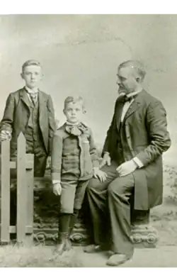 Jones married his first wife, Alma B Curtis, and had three children; sons Percy Curtis Jones (born 1878) and Paul Hugh Jones (born 1884), and a daughter, Eva Bell Jones (born 1879).[3][20] His daughter died in December 1881, at the age of 2, and Alma died Christmas Eve in 1885. Jones remarried Helen Beach, daughter of a prominent Toledo family, in 1892, and relocated to her hometown from Lima, Ohio shortly thereafter.[21] The couple had one child together, Mason Beach Jones (born 1897).[22][23]