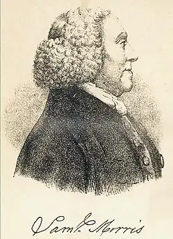 Born in Philadelphia on November 21, 1711, Samuel Morris was a son of Anthony Morris, and the husband of Hannah Cadwalader. Their sons James and Samuel Cadwalader attended the Academy of Philadelphia during its earliest years; Samuel Cadwalader Morris became a member of the College (later the University of Pennsylvania), class of 1760.