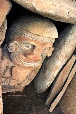 The beginning of the Formative Period was during 1000-600 BC. At that time, there was widespread sedentary occupation near the fertile agricultural lands. Ceramics were already being produced. Corn, beans, quinua, manioc and yam were being planted.[4] The dead were buried in shaft tombs located near their houses.