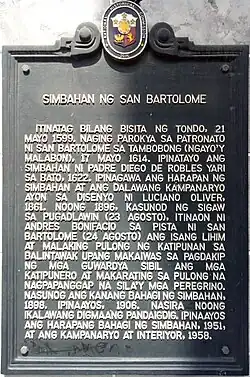 - ^ a b Sibug, Joemar (May 25, 2014). "San Bartolome Parish de Malabon @400". Davao Catholic Herald. Retrieved April 4, 2015.