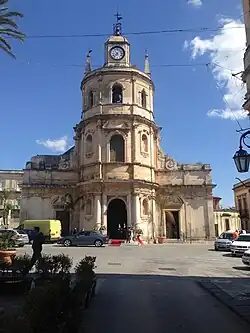 A prior mother church located in the prior old town and dedicated to the Madonna of the Providence, was razed by the 1693 Sicily earthquake. By 1748, the local Duke Ignazio Migliaccio commissioned construction of a new mother church in the central piazza of this then-newly planned urban center.