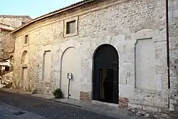 The exterior facing the piazza was represented by two round stone arches and two flanking windows, of which only one arch has not been closed off. The interior space is a single nave with wood roof.