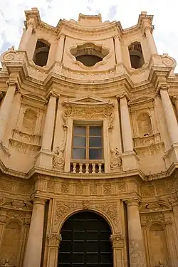 San Carlo al Corso is a Baroque-style, Roman Catholic church located on Corso Vittorio Emanuele #119 in the town of Noto, region of Sicily, Italy. This is also known as the Collegiata or collegiate church due to the adjacent Jesuit seminary and monastery.