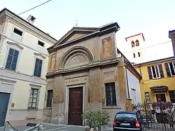 San Dalmazio is a Baroque style, Roman Catholic oratory or small chapel-church, located at via Mandelli #23, in front of the Palazzo Mandelli, in Piacenza, Region of Emilia Romagna, Italy.