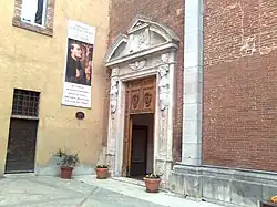 In the 15th-century, the Confraternity of San Giovanni and Rocco built a likely round sanctuary or oratory apparently comprising the present apse. In 1660, the church was granted to the Servite order monastery and expanded. The restricted space inside the town walls meant that part of the monastery was built against the facade. The portal awkwardly has two caryatids.