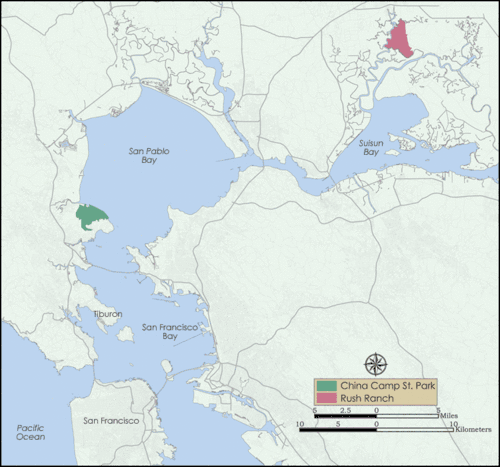- China Camp State Park — 1,640-acre (6.6 km2), on the shore of San Pablo Bay near San Rafael in Marin County.