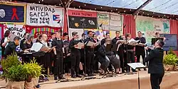 The CMC hosts several tuition-free programs, including choirs for adults aged 55 and older,[16][17] the Mission District Young Musicians Program for students aged 13 to 18,[18] a Black Music Studies program, led by Maestro Curtis and Nola Curtis,[19] and the New Voices Bay Area TIGQ Chorus, a mixed voice choral ensemble for transgender, intersex, and genderqueer singers, led by Reuben Zellman.[4][15][20] Former ambassador and philanthropist James Hormel was one of the first donors to help fund the New Voices chorus.[15]