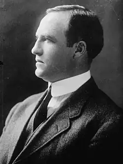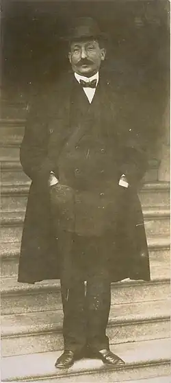 Heney did not die from his gunshot wound, as he had been expected to, and the trial resumed on November 18 after Judge William P. Lawlor dismissed several defense motions.[39] The prosecutor's role was assumed by Hiram Johnson Sr., a Sacramento private practice trial attorney, who had been specially retained to assist the San Francisco District Attorney's Office in the trial. During the trial, Johnson proved himself a hard-nosed, anti-corruption advocate, who went on to be elected to two terms as California's Republican 23rd governor (1911-1917) and five-terms as a Republican U.S. Senator from California (1917-1945), until dying in office on the day the U.S. dropped an atomic bomb on Japan.