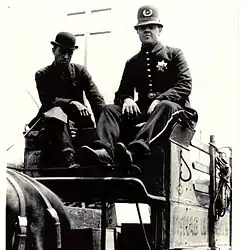 During the next two days, 500 women telephone operators and 1,500 streetcar operators also went on strike.[4] On May 7, 1907, what would later be called "Bloody Tuesday", six streetcars carrying armed guards attempted to leave the carbarn. An enraged mob threw rocks and bricks. A gunfight erupted between guards and men shooting from nearby vacant lots. From inside carbarns, strikebreakers opened fire on the crowd. Two died and 20 were wounded.[4]