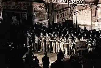 Protesters in front of the International Hotel