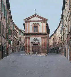 The narrow church or oratory of San Gaetano di Thiene is found in the middle of via dei Pispini in Siena, Italy.