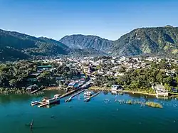 The fishing industry has taken a hit in recent years, with the lake's fish population steadily declining. This is in part due to the introduction of the non-native Black Bass 1958 in an attempt to attract more recreational fishing tourism. It has since caused disruption of the lake's natural ecosystem, causing the extinction of local bird and fish species.[4] Most fishermen are still able to make a living by taking tourists out in their traditional boats, but worry about the future.[1] The main crops of the area include avocado, coffee, cacao, and corn, though the town is notably lacking in land due to the expropriation of it by the government in response to the global coffee trade boom in the mid-20th century.[4]