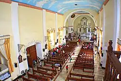 The church is the site of the Battle of San Rafael, a battle fought between Filipino revolutionaries under the leadership of General Anacleto “Matanglawin” Enriquez against the Spanish army headed by Commandant Lopez Arteaga.[3] On their way from the town of Paombong to the mountain ranges of Bulacan, General Isidoro Torres of Malolos decided to divide the troop of Katipuneros into two: one group under his supervision while the other under the guidance of General Enriquez and his brother Colonel Vicente Enriquez. The group of General Enriquez was supposedly heading to the town of Baliuag but decided to stay instead in San Rafael, believing it to be a strategic site. Unknowingly, a Spanish troop from Manila heading towards San Rafael, prepared to silence the 20,000 Filipino insurgents. The battle started at around 7 a.m. on November 30, 1896. The Spanish forces were so strong that General Enriquez ordered a retreat to the church of San Rafael. Sometime in the middle of the battle, some of the Filipino troops including Colonel Enriquez were separated from the rest of the group and headed to the town of Bigaa (now Balagtas). At around noon, the Spanish army forced the church doors open and murdered the Filipino revolutionaries seeking shelter in the church. It is estimated that 800 people were killed in the battle, most of whom were children, women and other locals. The number of casualties was so immense that it was believed that blood spilled in the church reached ankle-deep.[1] The gobernadorcillo of San Rafael ordered a mass grave to be made near the church.[4] It is believed that the Battle of San Rafael inspired the young general Gregorio Del Pilar (a close friend of General Anacleto Enriquez) to join the revolution against Spain.[3]