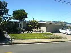 The Highlands was developed as a working-class neighborhood in the mid 1950s. Developer Joseph Eichler, between 1956 and 1964, built most of the homes using a Modernist style now called "California Modern", inspired by Frank Lloyd Wright.[3] The homes are post and beam construction featuring much glass, skylights, and atria. Most have a flat or gently sloped roof and in-floor radiant heating. Many of the neighborhood homes retain their original exterior form and are sought after by enthusiasts of Modern architecture. The neighborhood also includes the experimental X-100, one of only two Eichler houses built using steel rather than timber, as well as Eichlers with additions or other modifications from their original form and homes built by other developers in more traditional styles.
