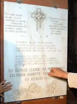 The San Patricio Church massacre was the mass murder of three priests and two seminarians of the Pallottine order on July 4, 1976, during the Dirty War, at St. Patrick's Church, located in the Belgrano neighborhood of the Buenos Aires, Argentina. The victims were priests Alfredo Leaden, Alfredo Kelly, and Pedro Duffau and seminarians Salvador Barbeito and Emilio Barletti. The murders were ordered by Argentine Navy Rear Admiral Ruben Chamorro.