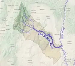 The San Rafael River is a tributary of the Green River, approximately 90 miles (140 km) long, in east central Utah, United States.[1] The river flows across a sparsely populated arid region of the Colorado Plateau, and is known for the isolated, scenic gorge through which it flows.