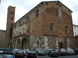 The church was erected by the Dominican order in the second half of the 13th century with bricks from the razed Augusta fortress. The exterior remains unfinished. Inside is the tomb of San Romano, built in 1490 by Matteo Civitali.[1] The church once held altarpieces by Fra Bartolomeo.[2] The elegantly decorated interior was refurbished in 1635 by the architect Vincenzo Buonamici.[3] The nave is presently used as an auditorium.[4]