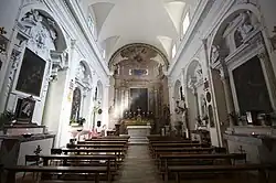 Other works the church include a copy of Andrea Sacchi’s Baptism of Christ, and a copy of Bernardino Spada's St Jerome. The altarpiece is an Madonna of the Immaculate Conception and St Peter, St Sabino, St Michael Archangel and St Paul (1665).[2]