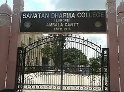 - ^ a b c "Sanatan Dharam College Ambala Cantt Haryana". punjabcolleges.com. Retrieved 8 August 2014.