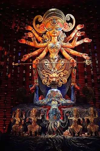 Sanatan Dinda contributes to the Durga puja of his locality and in doing so has picked up various awards.[2] His artwork is private collections of former cricketer Sachin Tendulkar[3] Amjad Ali Khan, RPG Enterprises, Reliance Industries, Ballarpur Industries Limited, etc. His exhibition at the Hyatt Regency hotel in Kolkata on 28–29 January 2010 was inaugurated by Amjad Ali Khan.