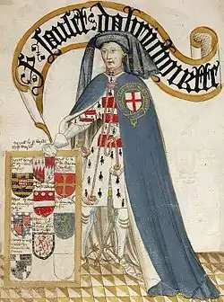 - ^ a b c Beltz, George Frederick (1841). Memorials of the most noble Order of the Garter, from its foundation to the present time. Including the history of the order; biographical notices of the knights in the reigns of Edward III. and Richard II., the chronological succession of the members. London: W. Pickering. pp. 90–92.