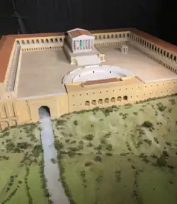 The Sanctuary of Hercules Victor (Italian: Ercole Vincitore) in Tivoli (Italy) was one of the major complexes of the Roman Republican era built on the wave of the Hellenistic cultural influence after the final Roman conquest of Greece (146 BC).[1] It was built just outside the ancient city of Tibur and is the largest of Italic sanctuaries dedicated to Hercules (such as the Shrine of Hercules Curinus), and the second in the whole Mediterranean after that of Cádiz in Spain.[2] It was built between about 120 and 82 BC and was a masterpiece of Roman engineering with many innovations.[3] Further building was done in the Augustan period especially in the theatre area. Augustus administered justice here on numerous occasions, under the arcades of the sanctuary.[4]
