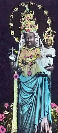 Popular belief says that the wooden statue has no woodworm despite its age,[12] the foot is not worn out despite the ancient tradition of touching it for good luck,[13] and that dust does not settle on the faces of the Virgin and of the Baby.[14]