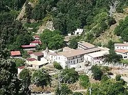 The Sanctuary of Our Lady of Polsi, also known as the Sanctuary of Santa Maria di Polsi or Our Lady of the Mountain, is a Christian sanctuary in the heart of the Aspromonte mountains, near San Luca in Calabria, southern Italy. It was founded by Roger II of Sicily in 1144.[1] The church and monastery are situated in a spectacular setting at the bottom of a gorge at an altitude of 865 metres surrounded by high mountains on the east side of the Montalto (1,955 metres), the highest peak of the Aspromonte.[2] The sanctuary is difficult to reach. Until some years ago Polsi could only be reached by foot.[3]