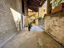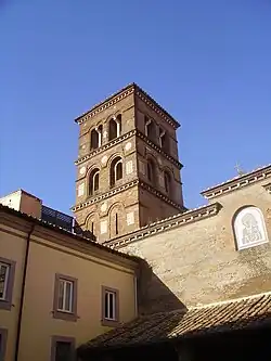 The bell tower, a remarkable example of Romanesque architecture datable to the early 14th century, was restored to its original appearance after "modernization" works carried out in the 17th century -when it was covered with stucco- and in 1708.[55]