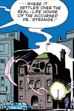The Sanctum Sanctorum is a fictional building appearing in American comic books published by Marvel Comics, as the residence and headquarters of Doctor Strange. Created by Stan Lee and Steve Ditko, the building first appeared in Strange Tales #110 (July 1963). It is located at the address 177A Bleecker Street in the Greenwich Village neighborhood of New York City.[1] This is a reference to the address of an apartment once shared by writers Roy Thomas and Gary Friedrich.