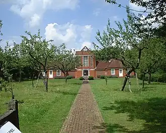 Sandham Memorial Chapel is in the village of Burghclere, Hampshire, England. It is a Grade I listed,[1] 1920s decorated chapel, designed by Lionel Pearson. The chapel was built to accommodate a series of paintings by the English artist Stanley Spencer. It was commissioned by Mary and John Louis Behrend (1881–1972) as a memorial to Mary's brother, Lieutenant Henry Willoughby Sandham who died of illness contracted in Macedonia after the First World War. The chapel is surrounded by lawns and orchards, with views of Watership Down.