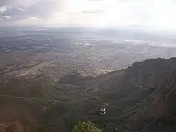 The Sandia Peak Tramway is an aerial tramway, adjacent to Albuquerque, New Mexico, in the United States. It stretches from the northeast edge of the city to Sandia Peak, on the ridge line of the Sandia Mountains[1] and has the world's third longest single span.[2] It is the longest aerial tram in the Americas, and was the longest in the world from 1966 until being surpassed in 2010 by the Wings of Tatev in Armenia.