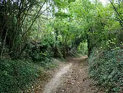 The Pilgrims' Way is the path supposedly followed by pilgrims from Winchester, Hampshire to the shrine of Thomas Becket at Canterbury. It runs east to west along a pre-existing ancient trackway[29] that is also part of the North Downs Way.