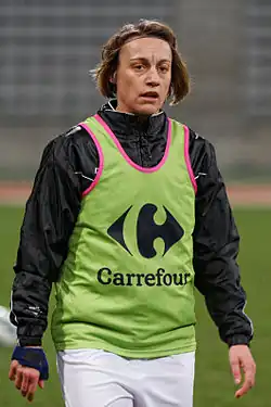 Over the following years she established herself as a capable midfielder, becoming a consistent presence in the French squads, accumulating appearances with the national team and eventually becoming the team's captain. Apart from major tournaments, she played in numerous friendlies and smaller international tournaments, such as qualifications for major tournaments, Algarve Cups and Cyprus Cups.[6][11][12]