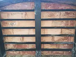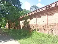 The citadel is inside the fort's inner brick wall. It measures around 600 by 600 feet (180 m × 180 m), and its walls are 14 to 20 feet (4.3 to 6.1 m) high. There are four guarding pillars in the 4 corners of 4 directions. The southern passageway door leads to the Govindajee Temple.[9][6] It built of bricks. It houses many holy sites, including the coronation site of Pakhangba.[a] It has three main entrance gates, two on the western side, one facing the Royal Coronation Hall and one facing the darbar hall, and one on the southern side that leads to a passageway to the Shree Govindajee Temple.[6][9][7]
