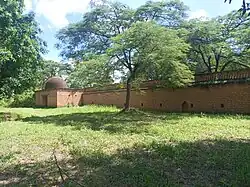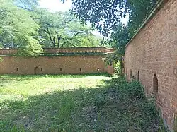 It is surrounded by five walls of the Kangla Fort. The innermost wall is the only one that is standing still today. There is one octagonal watchtower at every corner of the wall, serving as sentry posts. Its entire perimeter has military installations (emplacements) of around 500 defender soldiers.[10]