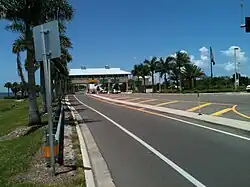 The Sanibel Causeway is a causeway in Southwest Florida that spans San Carlos Bay, connecting Sanibel Island with the Florida mainland in Punta Rassa. The causeway consists of three separate two-lane bridge spans, and two-man-made causeway islands between them. The entire causeway facility is owned by Lee County and operated by the Lee County Department of Transportation (DOT). The causeway is 3 miles (5 km) long with a $6 toll for island-bound vehicles only.