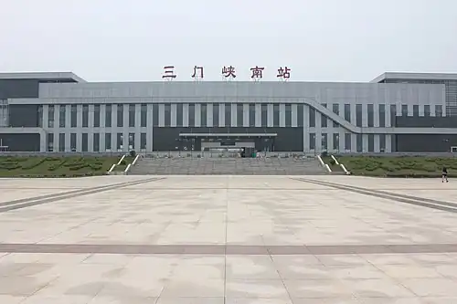 The Sanmenxia South railway station (Chinese: 三门峡南站) is a railway station located in Sanmenxia, Henan, China. It was opened on 6 February 2010, along with the Zhengzhou–Xi'an high-speed railway.[1]