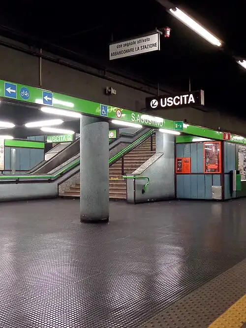 Sant'Agostino is an underground station on the Milan Metro Line 2, located under Piazza Sant'Agostino, in Milan's Municipality 1. It was opened on 30 October 1983 as part of the extension of the line from Cadorna to Porta Genova.[2]