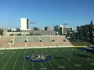 Santa Ana Stadium, also known as Eddie West Field or the Santa Ana Bowl, is a city-owned and operated 9,000-capacity American football and soccer stadium located in downtown Santa Ana. The field was named after Eddie West, a writer for the Orange County Register and tireless supporter of the Santa Ana College Dons and all Orange County sports.[2][3]