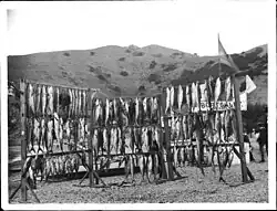 During European colonization, the first European to set foot on the island was the Portuguese explorer Juan Rodríguez Cabrillo, who sailed to the west coast in the name of the Spanish crown. On October 7, 1542, he claimed the island for Spain and named it “San Salvador” after his ship. Although his interactions with Catalina Island are not well-documented, his main achievement was in mapping and exploring the coastline, which helped lay the foundation for future European expeditions and settlements in California.[8] Over half a century later, another Spanish explorer, Sebastián Vizcaíno, arrived at the island on the eve of Saint Catherine's day (November 24) of 1602. Vizcaino renamed the island in the saint's honor.[2] The colonization of California by the Spanish greatly contributed to the decline of the Pimugnans because of diseases brought by the Spanish from Europe. By the 1830s, the island's entire native population had been forced to the mainland on the Spanish missions or to work as ranch hands for the many private land owners.[2]