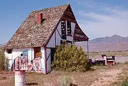 In 2003, the population of Santa Claus was 10, divided among five houses, one of which had a buffalo.[14] By 2004, the town had become difficult to locate.[9] In that year, the town was identified as being located on the southward (western side) of the then newly divided and expanded, four-lane U.S. Route 93.[9] The town was described as "an abandoned, road-rise pull off with a handful of old buildings – all closed" with "This is it! Santa's Land" and "Santa's Desert Retreat" being the only two signs left from the early days of the town.[9]