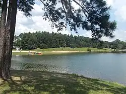 Santa Claus has grown substantially since the 1990 census, which recorded 927 residents. A majority of Santa Claus residents live within the gated community of Christmas Lake Village, which was developed in the late 1960s. It consists of 2,500 acres (10 km2) developed around three lakes: Christmas Lake, Lake Holly, and Lake Noel. The street names in Christmas Lake Village are all named after the Christmas season. Many residents also live in Holiday Village, a subdivision on the north side of town.