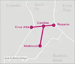 The SFW was founded in 1883 by Carlos Casado del Alisal (the first president of the Provincial Bank of Santa Fe), with the goal of bringing the agricultural wealth of the region to the Port of Rosario on the Paraná River. [1]