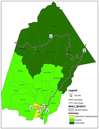 Currently, there are 6 barangays classified as highland/upland barangays, while 12 are inland barangays, and the remaining 7 are situated in the lowland (Valley area).