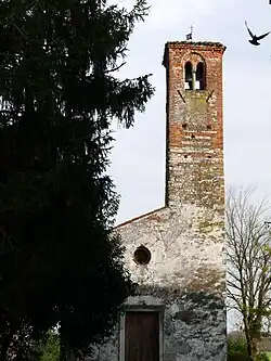 A church at the site is documented since 1154 as belonging to the Abbey of Pomposa. The church underwent reconstruction around 1490. The simple stone and brick structure has a single, rectangular nave, with a square apse. The bell-tower arises awkwardly from a corner of the facade. A stone bas-relief in the church dates possibly to the 6th or 7th century.[1] A more recent reconstruction took place in 1933.